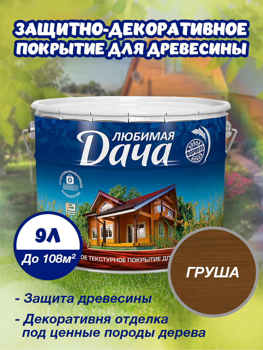 Антисептик Любимая Дача 9л Груша Защитно-Декоративное Покрытие для Древесины.