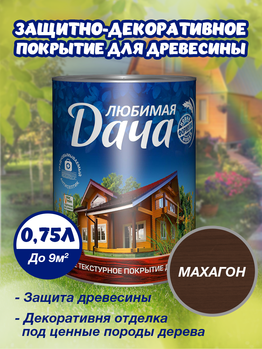 Биоцидная пропитка любимая дача Защитно-декоративное покрытие для древесины, 0.75 л, махагон