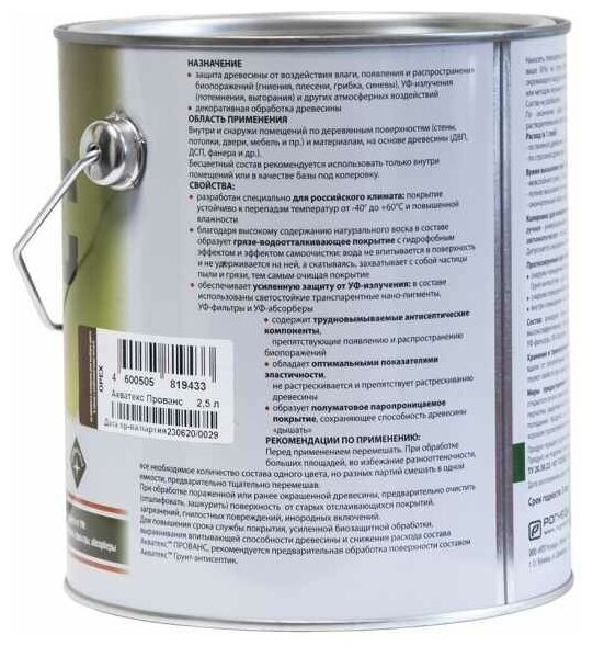 Антисептик для Дерева Акватекс Прованс 2.5л Сосна Лессирующий Инновационный для Внутренних и Наружных Работ.