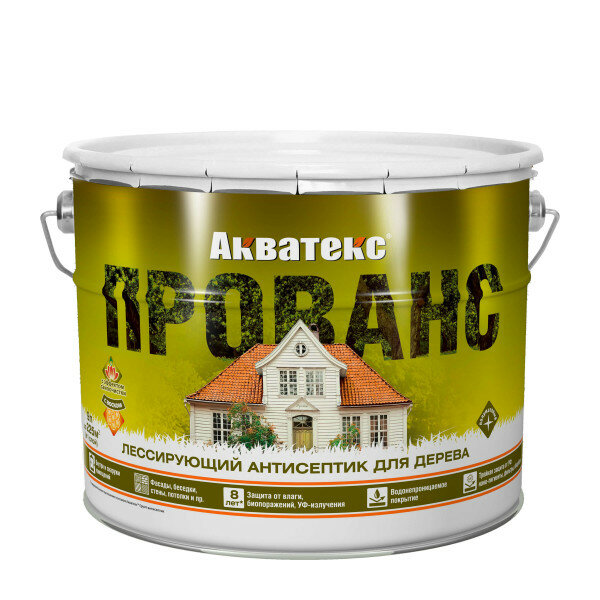 Антисептик для Дерева Акватекс Прованс 9л Калужница Лессирующий Инновационный для Внутренних и Наружных Работ.