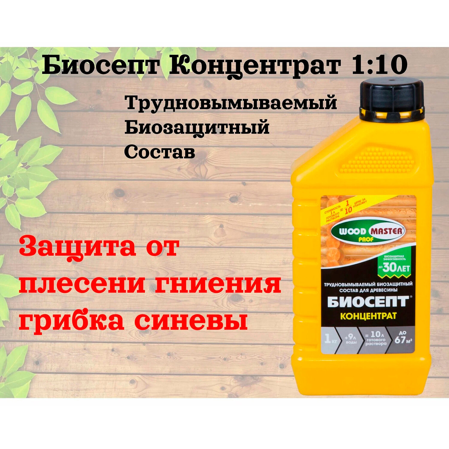 Биоцидная пропитка WOODMASTER PROF биосепт Концентрат, 1 кг, 1 л