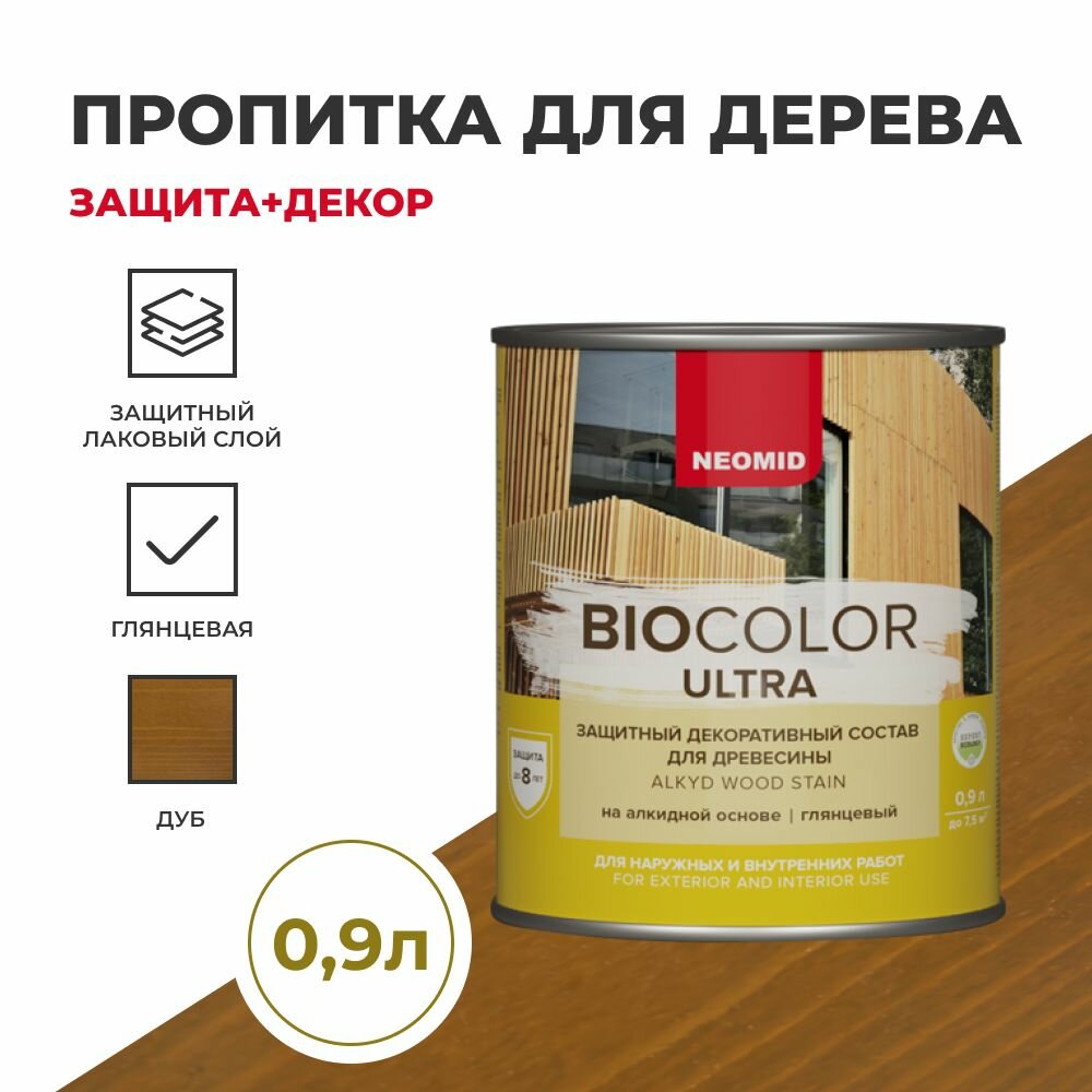 Купить Neomid Bio Color Ultra Декоративный деревозащитный состав (дуб, 0,9 л)