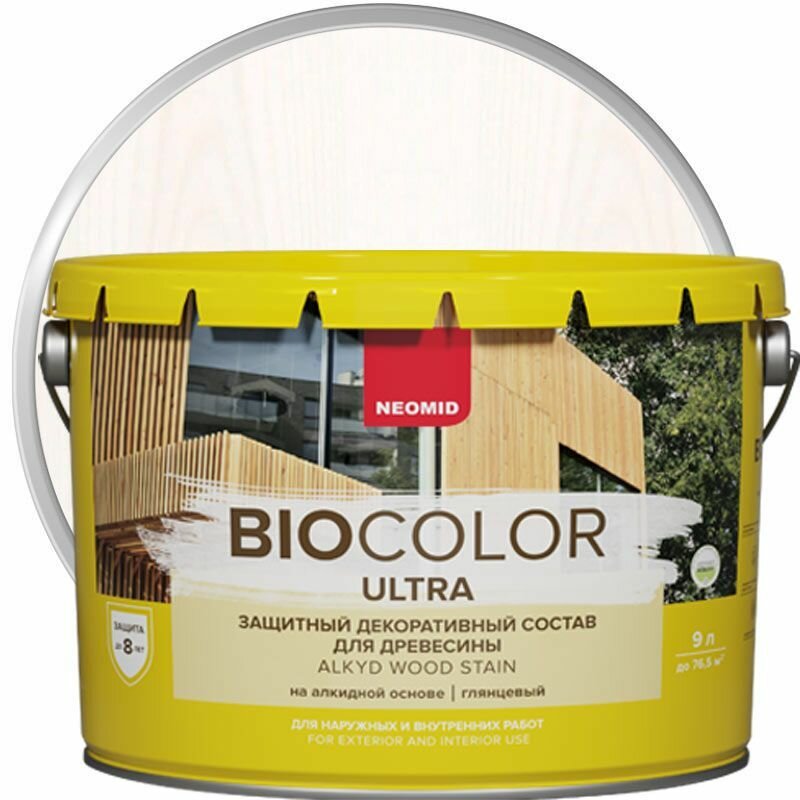 Neomid защитный декоративный состав для древесины BIO COLOR ULTRA, белый 9л