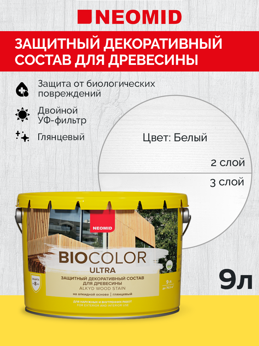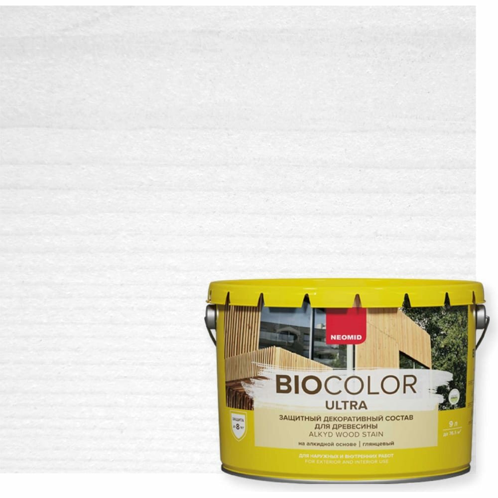 Купить Состав защитный для древесины Neomid Bio Color Ultra полуглянцевый (9л) белый