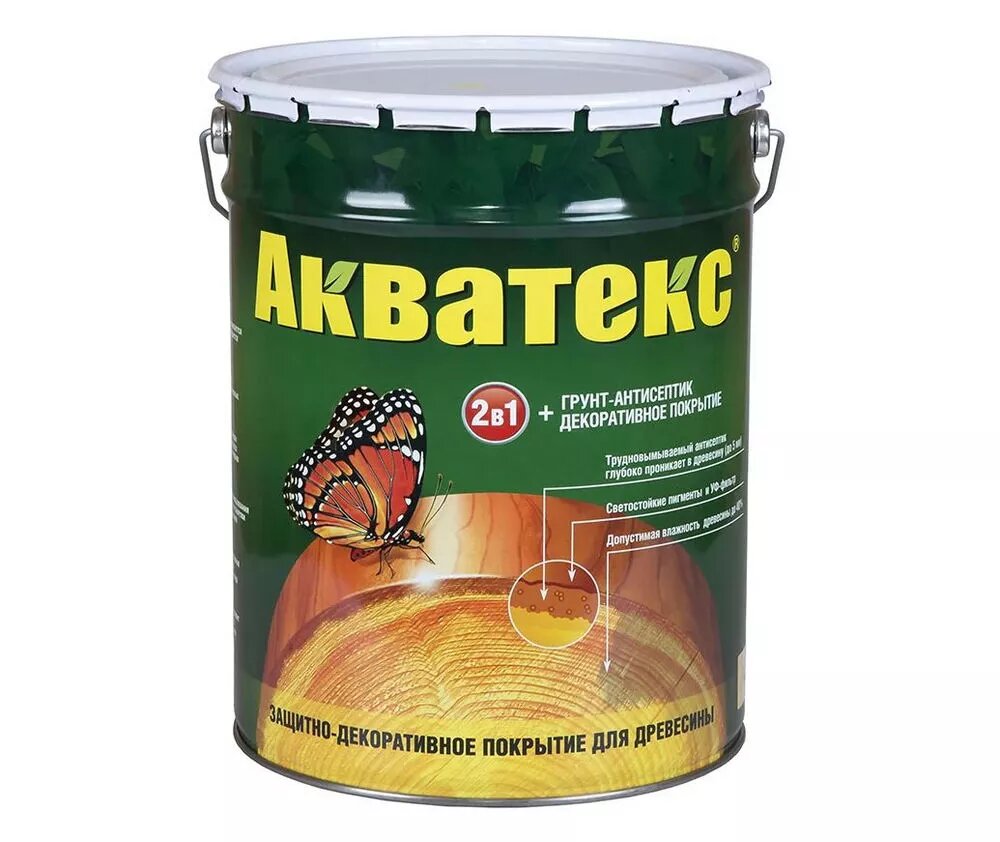 Защитно-декоративное покрытие Акватекс 2 в 1 для древесины алкидное полуматовое лессирующее, сосна 20л