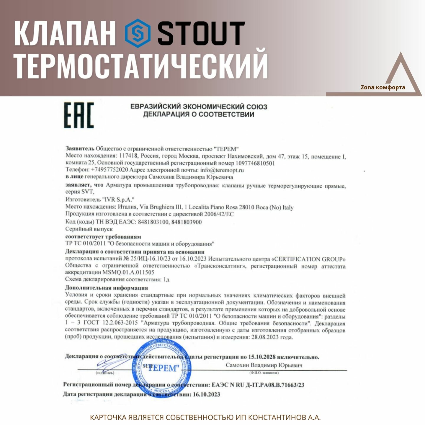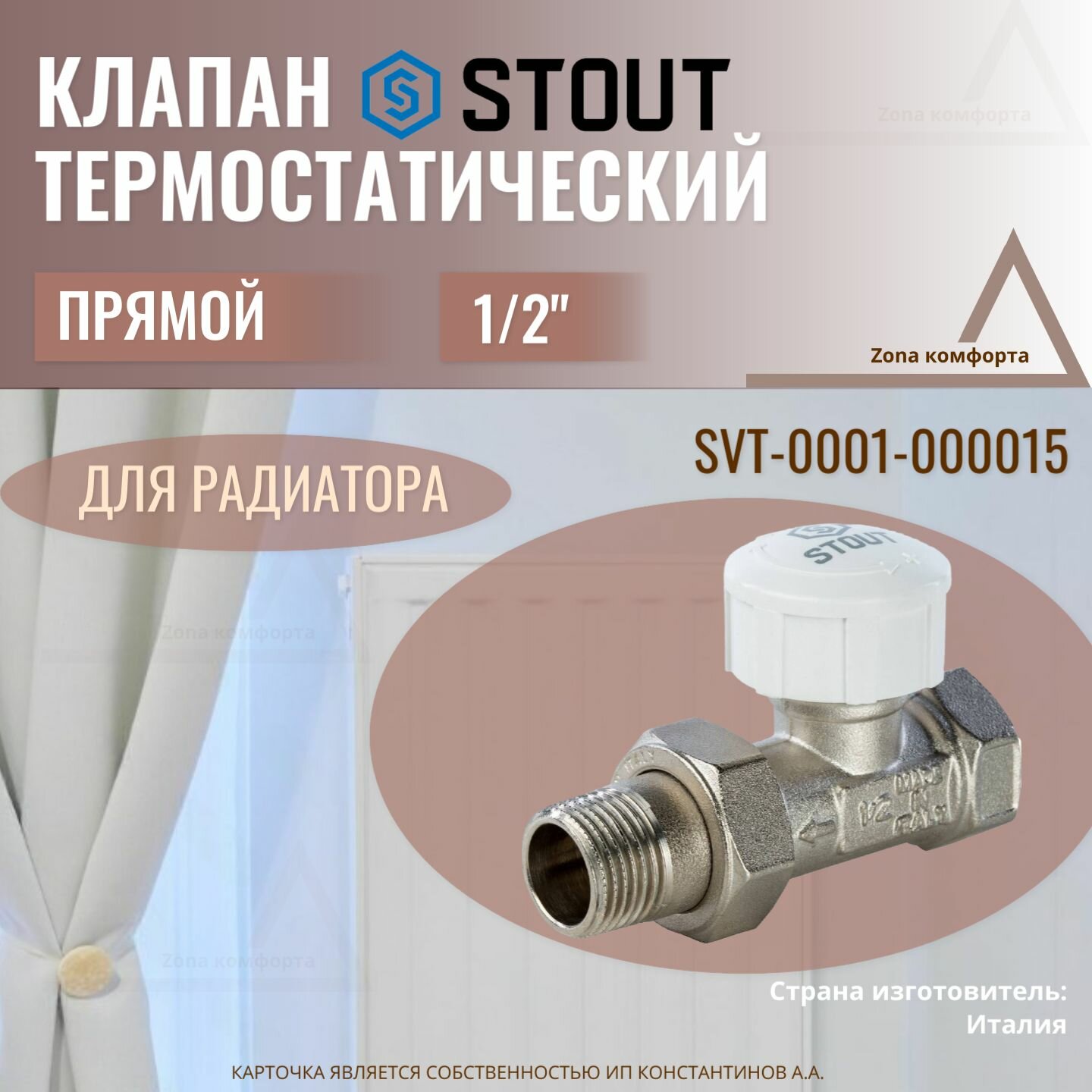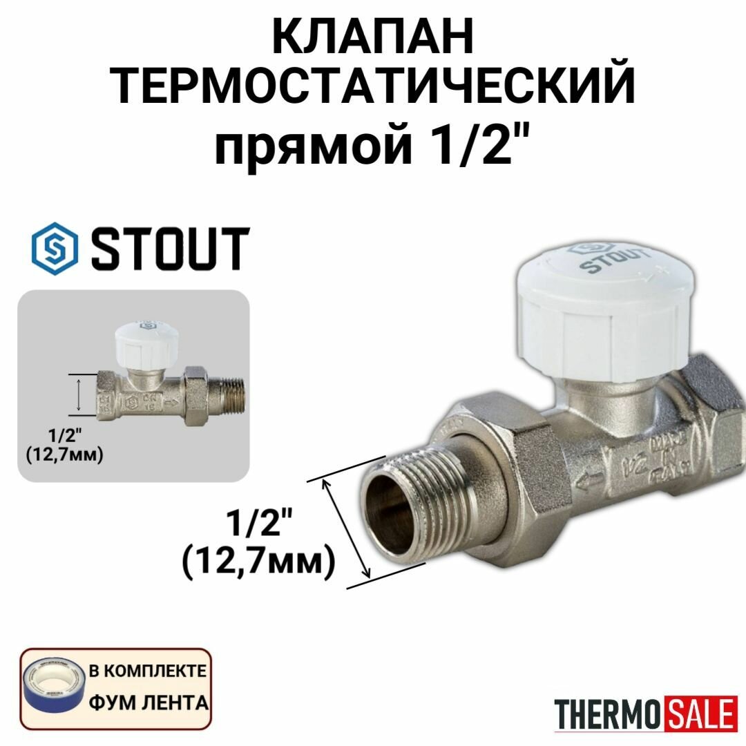 Клапан термостатический stout, прямой 1/2