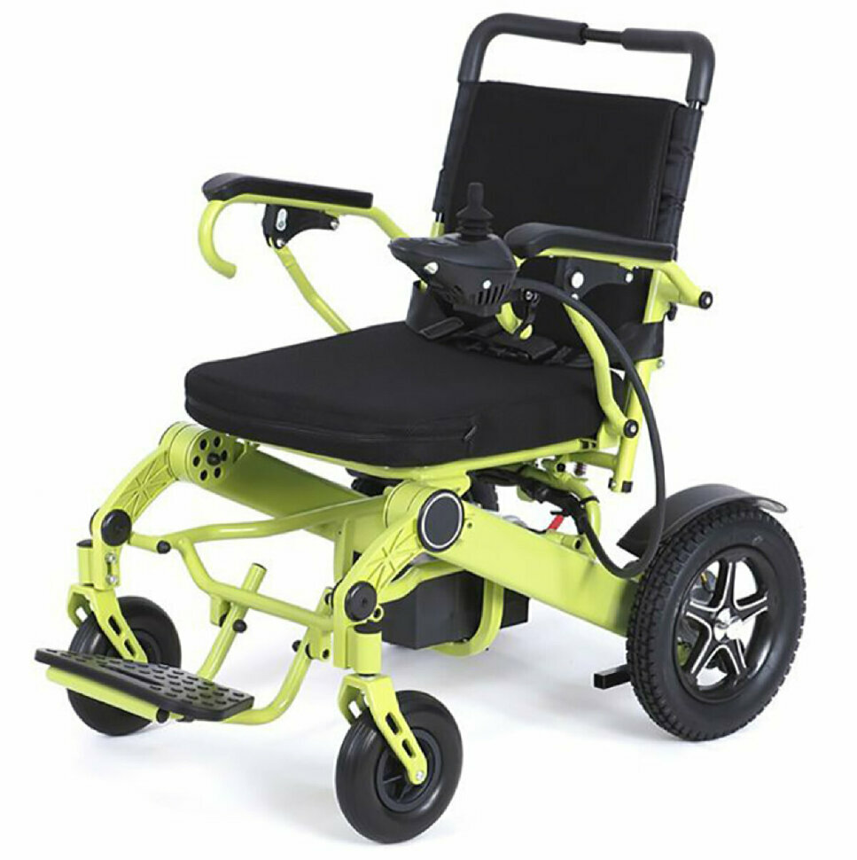 Электрическое кресло-коляска MET Compact 35 (16233) с откидными подлокотниками ширина сиденья 45 см нагрузка до 125 кг, зеленая рама