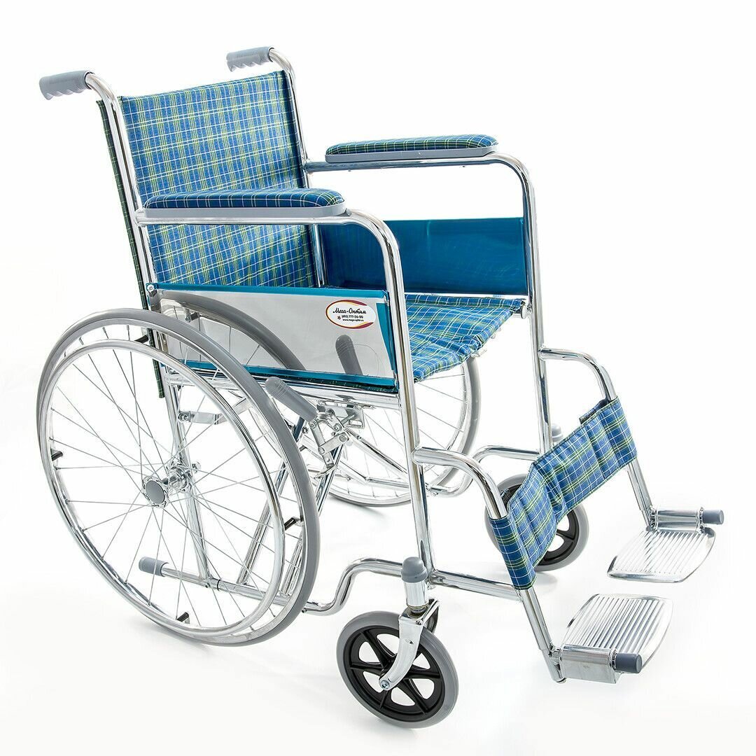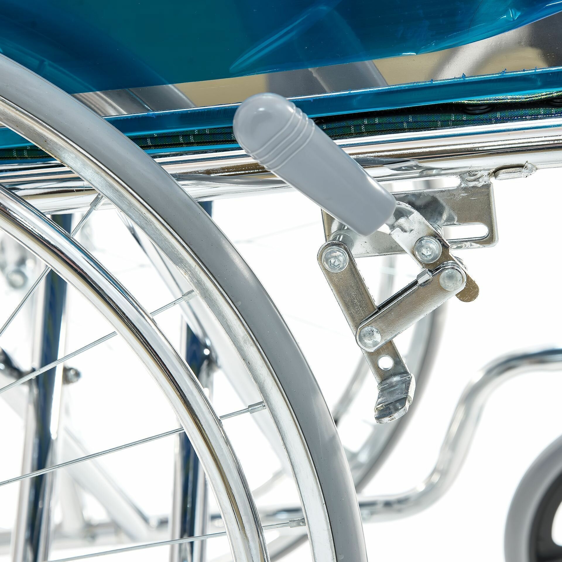 Кресло-коляска механическая Мега-Оптим FS874, ширина сиденья: 410 мм, материал: сталь, колеса (передние/задние): литые/литые, цвет: синий/серебристый