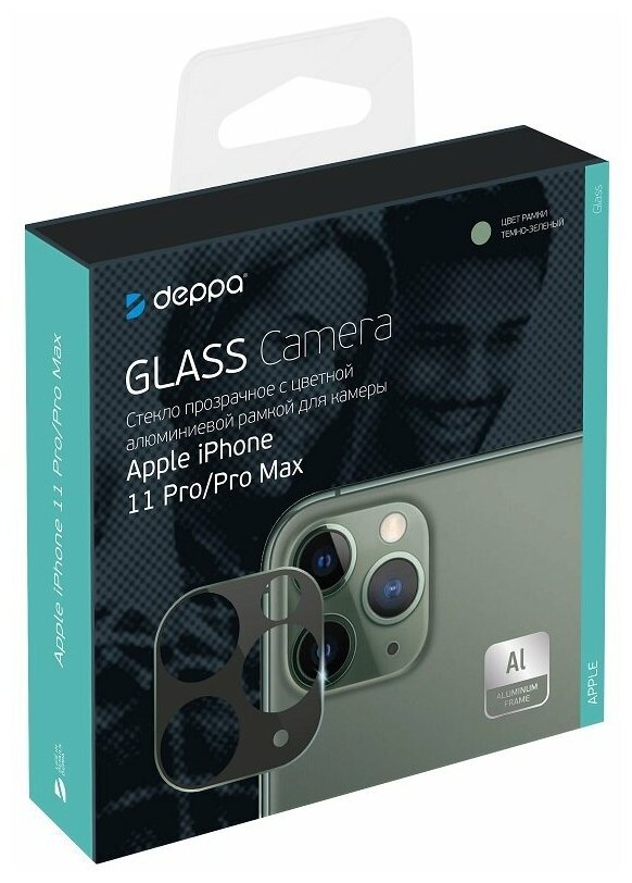Купить Защитное стекло для камеры Deppa для IPhone 11 Pro/11 Pro Max, темно-зеленое арт. 62623