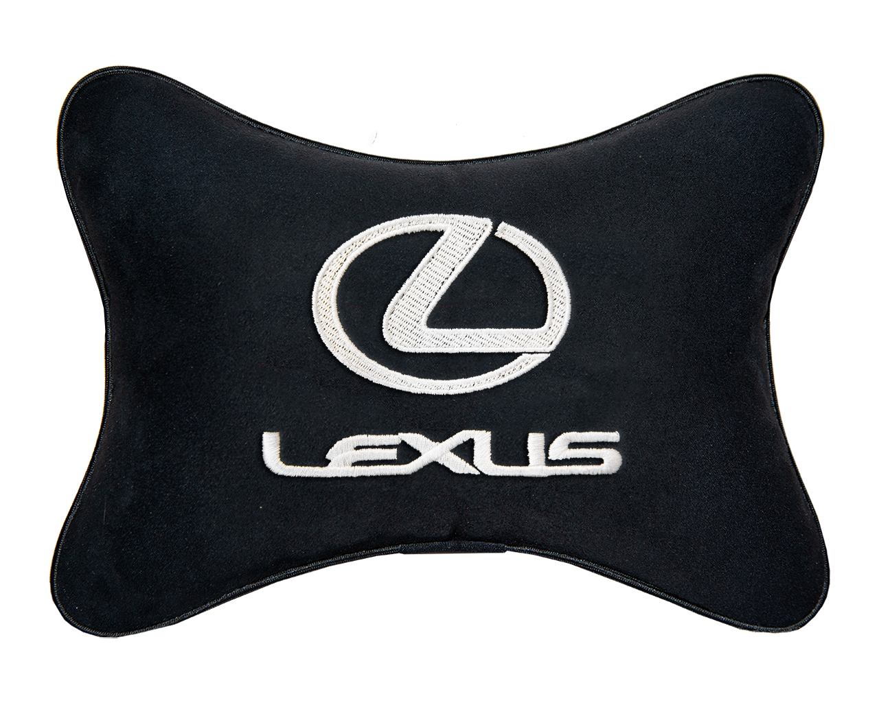 Купить Автомобильная подушка на подголовник алькантара Black с логотипом автомобиля LEXUS