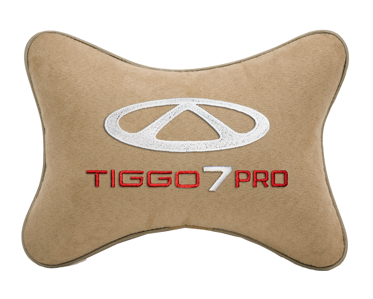 Купить Автомобильная подушка на подголовник алькантара Beige с логотипом автомобиля CHERY Tiggo 7 PRO