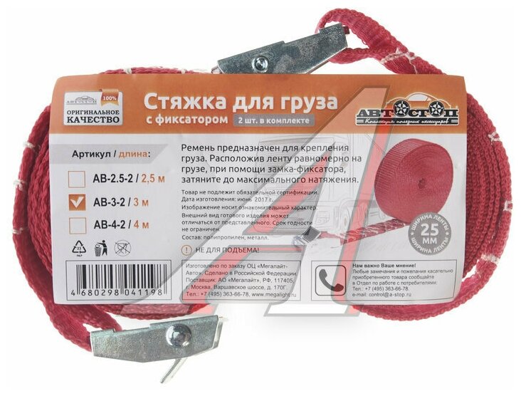 Стяжка для груза с фиксатором 3м х 25мм (к-т 2шт., европакет) AB-3-2 автостоп интересное: