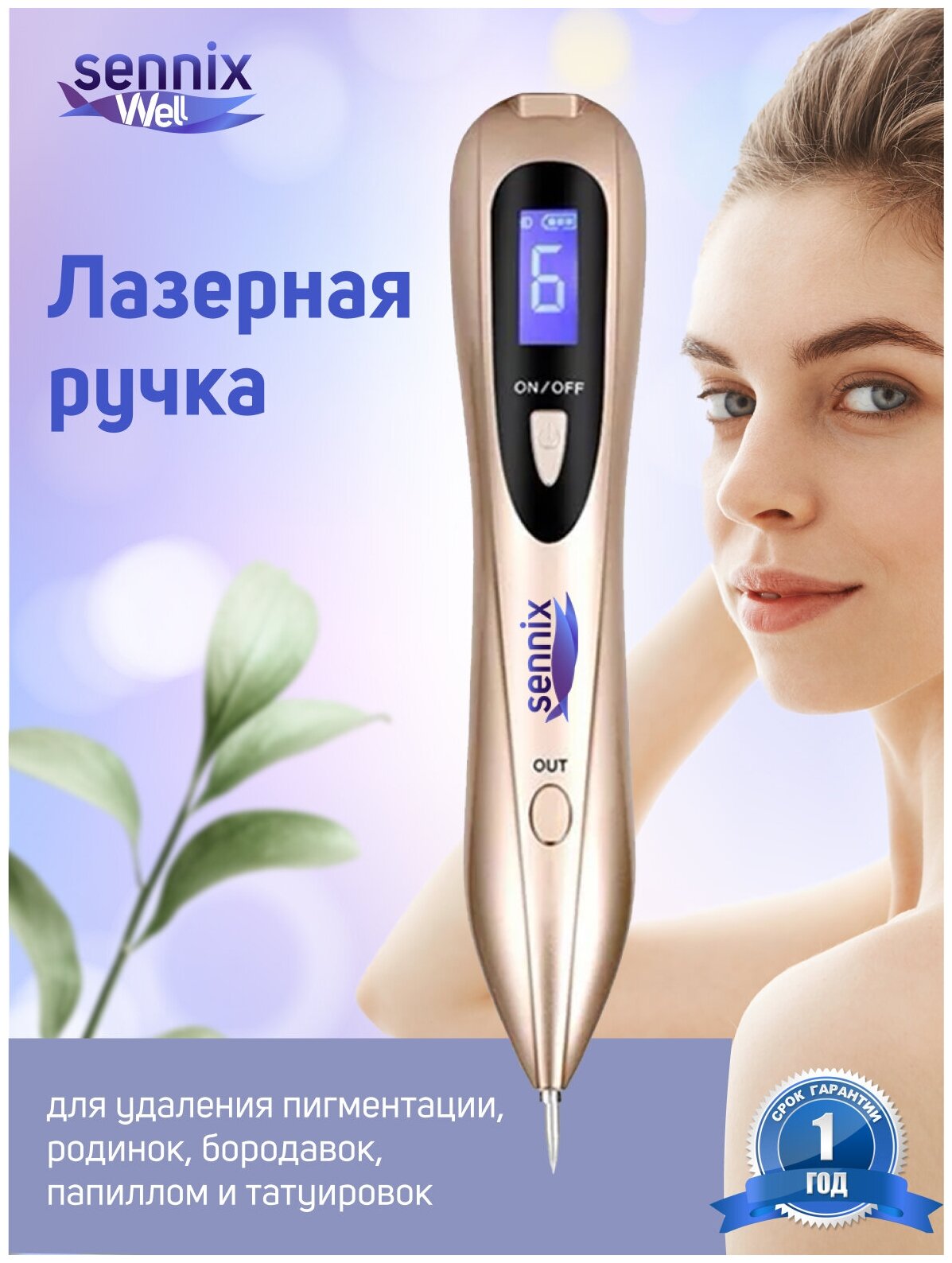 Косметологический аппарат Sennix — лазер для удаления родинок, пигментации, веснушек, папиллом, бородавок, тату. Золотой. интересное: