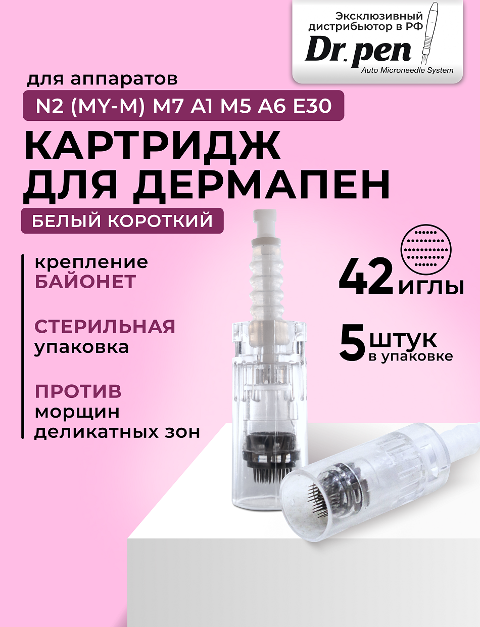 Dr.pen Картридж для дермопен мезопен / на 42 иглы / насадка для аппарата dr pen / дермапен / белый байонет, 5 шт. интересное: