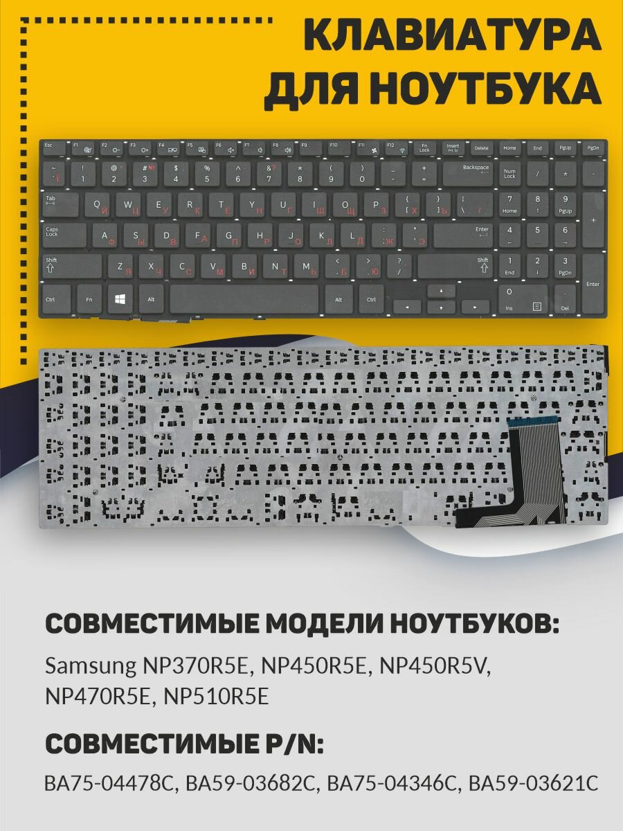 Клавиатура для ноутбука Samsung 370R4E 370R4E-S01 370R5E черная интересное: