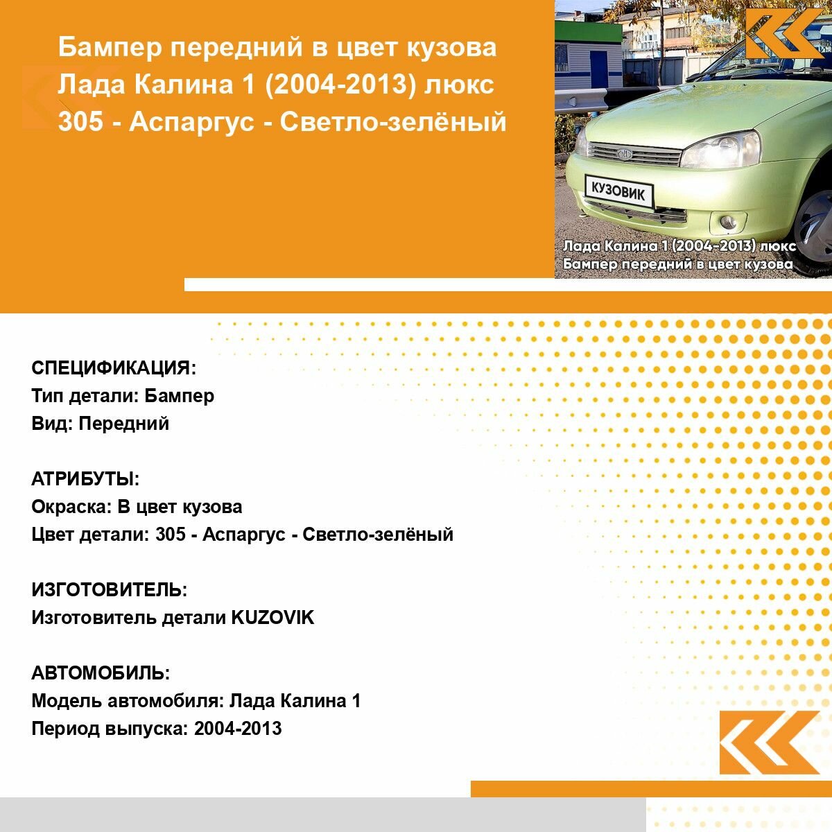 Бампер передний в цвет кузова Лада Калина 1 люкс 305 - Аспаргус - Светло-Зеленый интересное: