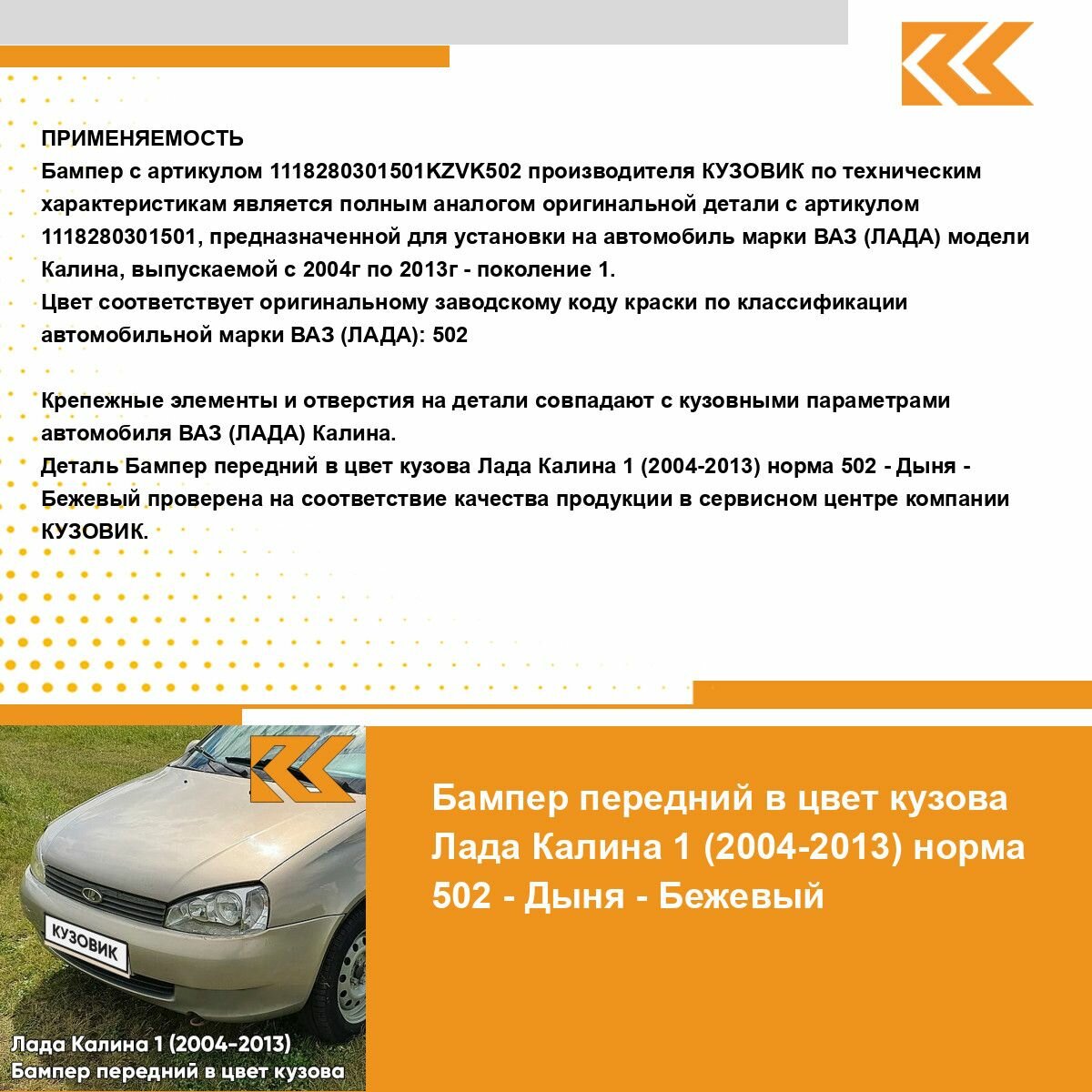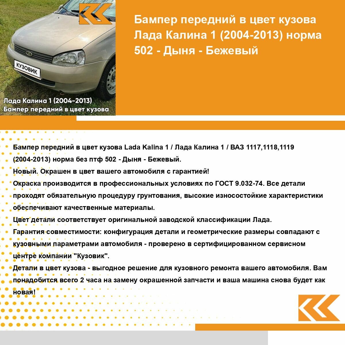 Бампер передний в цвет кузова Лада Калина 1 норма 502 - Дыня - Бежевый интересное: