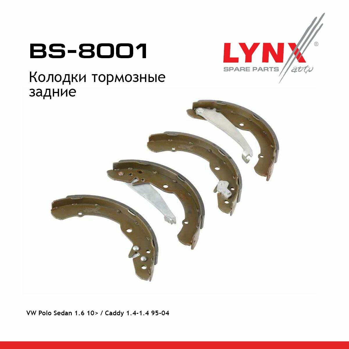 Колодки Тормозные Барабанные | Зад |_Vw Polo Sedan 1.6 10> / Caddy 1.4-1.4 95-04, Rear_рос LYNXauto арт. BS-8001