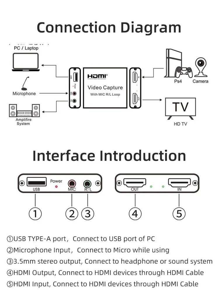 Карта видеозахвата HDMI to USB3.0, 1080P@60Hz чипсет MS2130, модель EVihu3, Espada