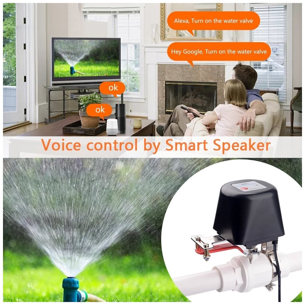 Умный электропривод-клапан на шаровой кран Tuya WiFi для перекрытия воды и газа. Работает с Алисой