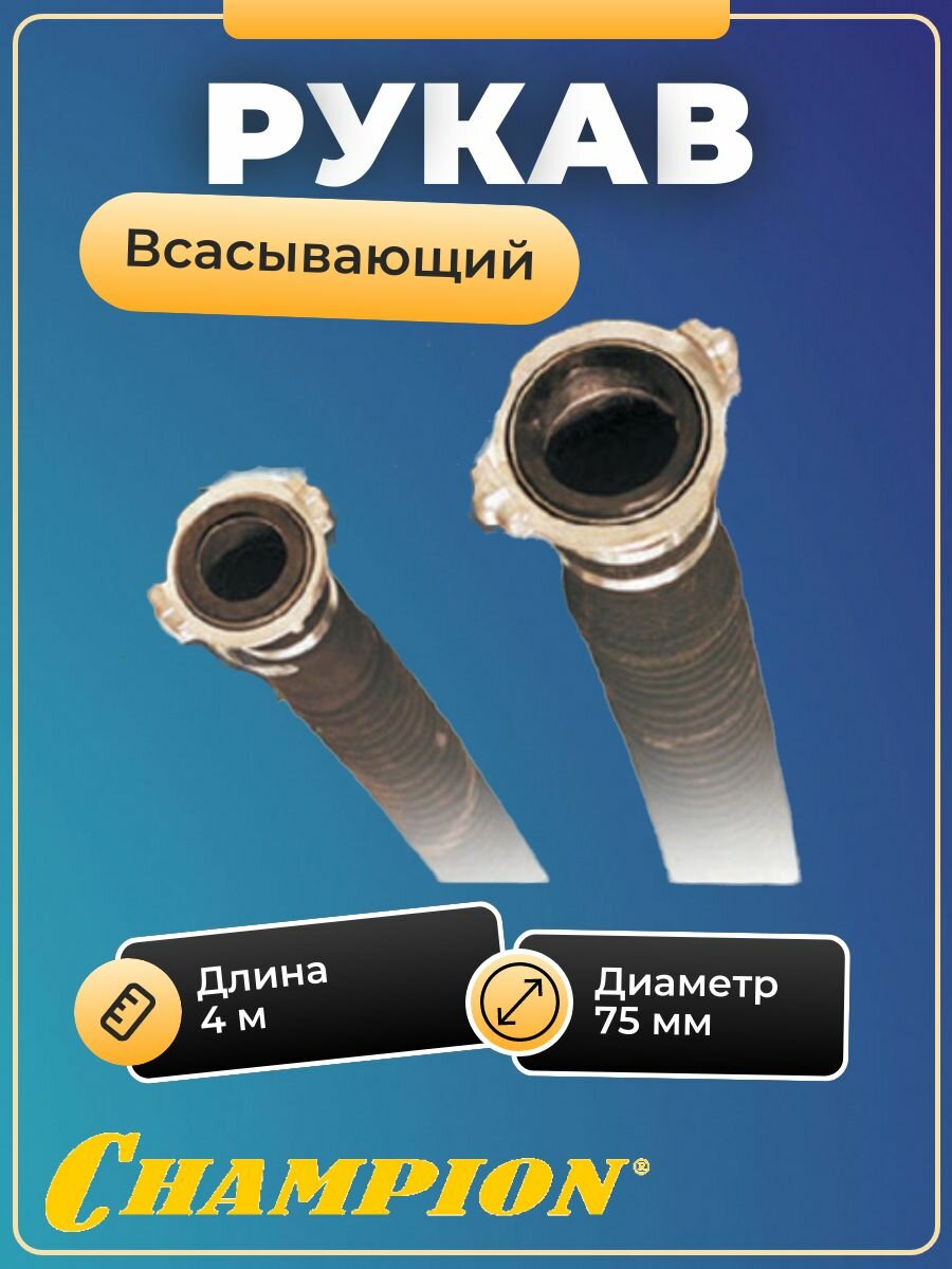 Рукав всасывающий Champion с головкой ГР-80 (D-80мм, L-4м) (C2509) интересное: