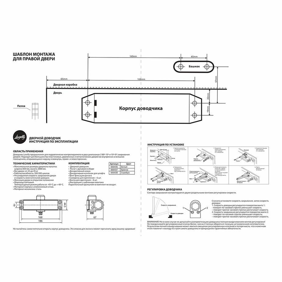 Доводчик дверной Lavelly (45 кг) бронза интересное: