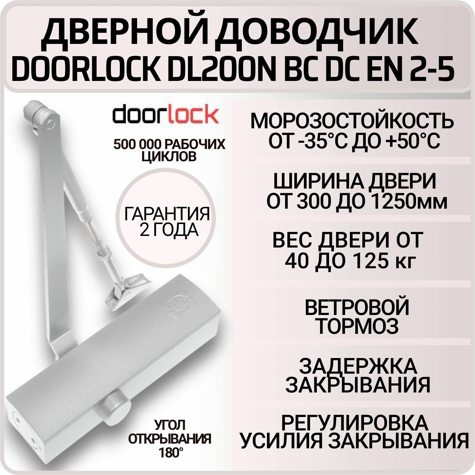 Доводчик дверной DOORLOCK DL200N BC DC EN2-5 морозостойкий уличный серебристый до 125 кг.
