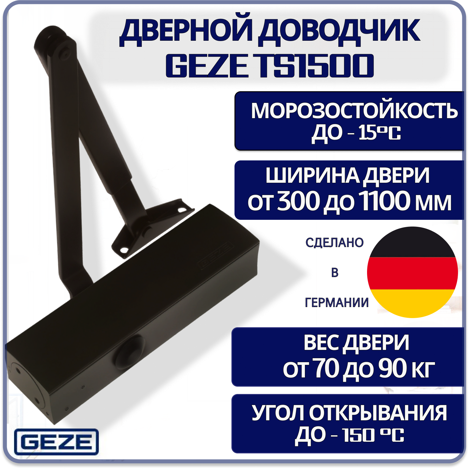 Доводчик дверной GEZE TS1500 черный до 90 кг. интересное: