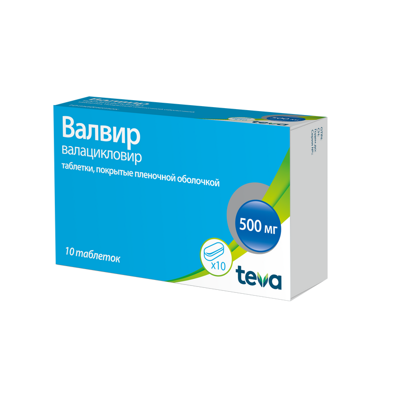 Валвир, таблетки покрыт. плен. об. 500 мг, 10 шт.
