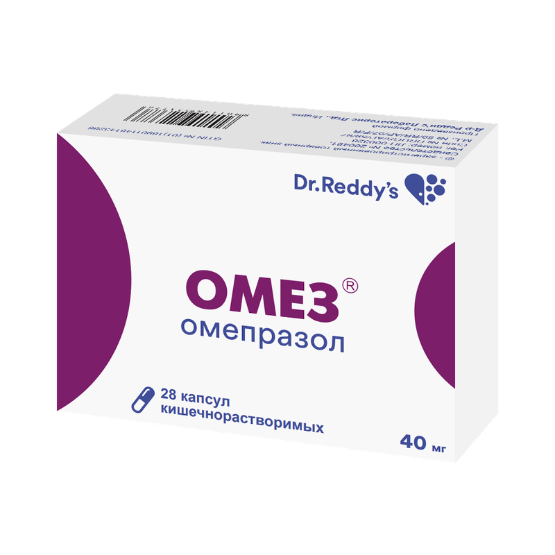 Омез, капсулы кишечнорастворимые 40 мг, 28 шт.