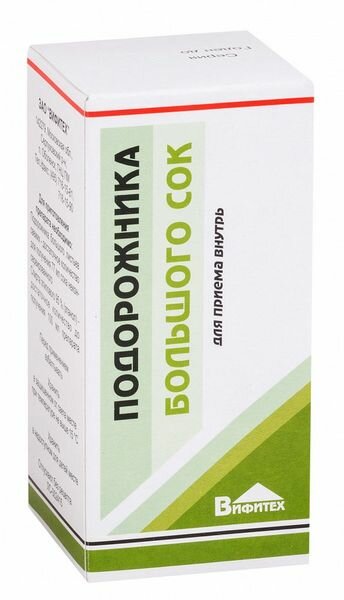 Уменьшение боли Вифитех Подорожника большого сок 100 мл (фл стекло) (инд уп-ка)