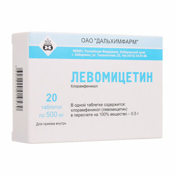 Левомицетин таб. 500мг №20 уп.конт.яч.