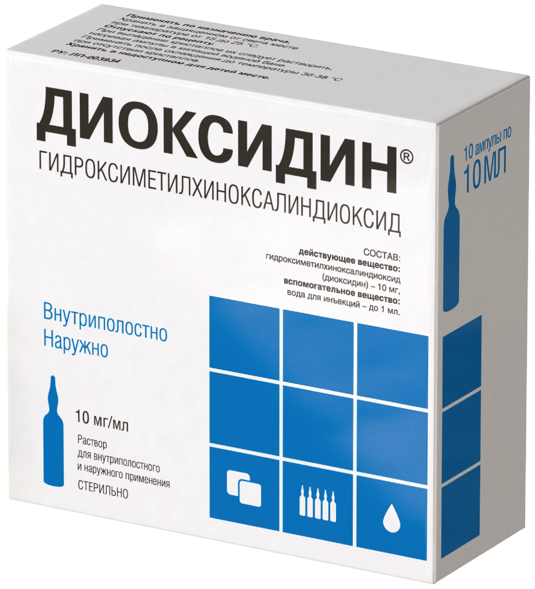 Диоксидин раствор для в/полост введ и наруж прим 10 мг/мл 10 мл 10 шт