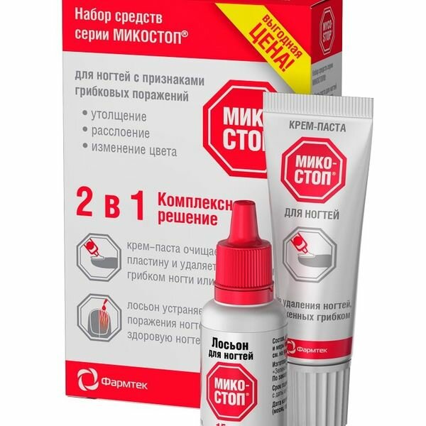 Микостоп, набор (лосьон для ногтей и крем-паста)
