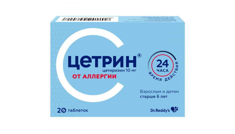Уменьшение зуда Д-р Реддис Лабораторис Цетрин таб п/пл/о 10 мг №20