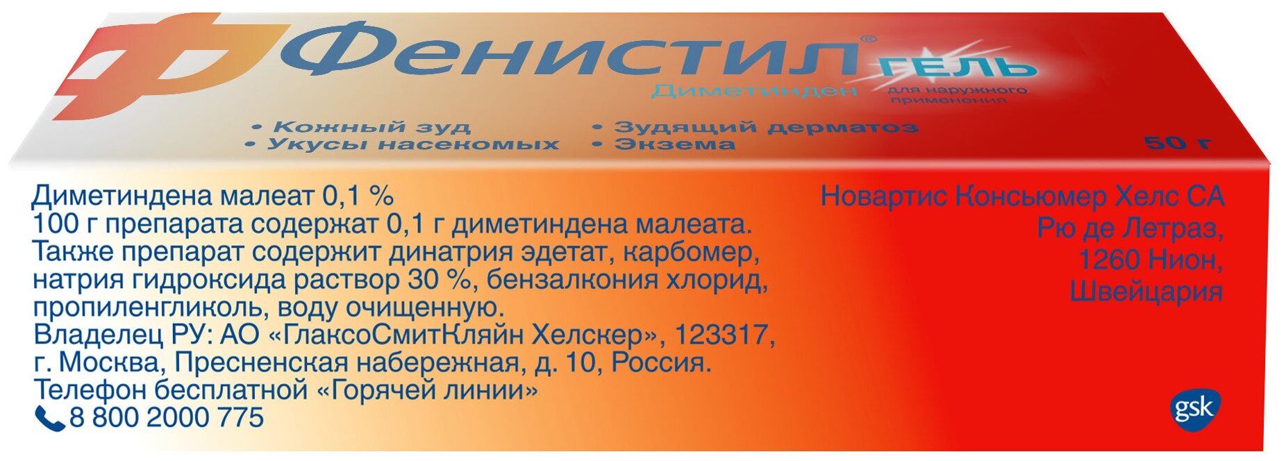 Фенистил Гель от зуда и раздражения кожи, гель 0,1% 50г