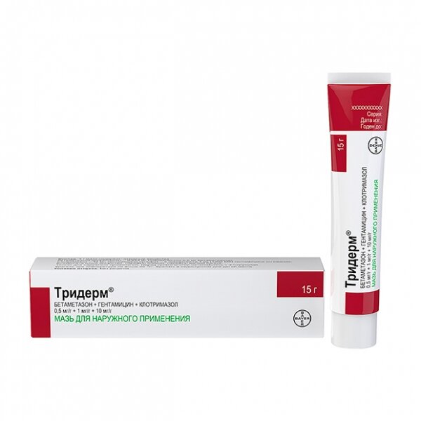 Тридерм мазь д/наруж. прим. 0.05%+0.1%+1% 15г интересное: