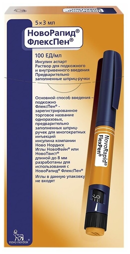 Инсулин Новорапид ФлексПен р-р для в/в и п/к введ.100ЕД/мл шприц-ручка 3мл №5