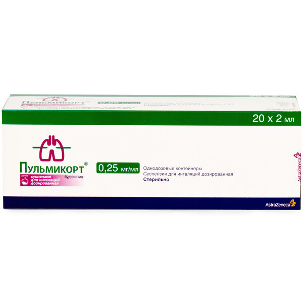 Пульмикорт суспензия для ингаляций дозированная 0,25мг/мл 2мл 20шт
