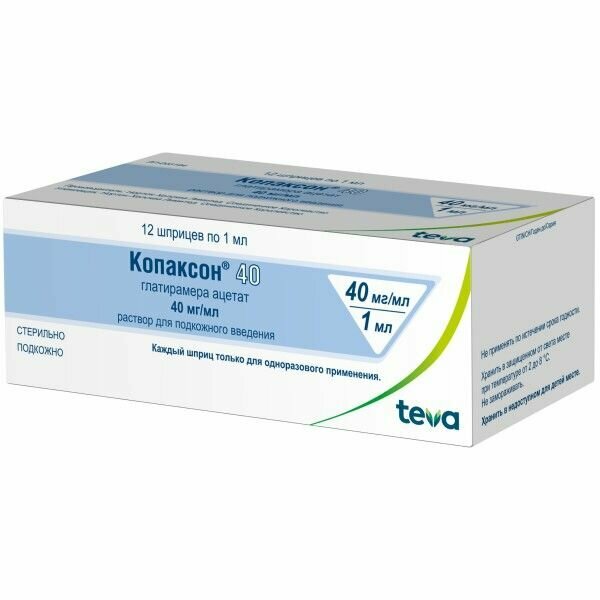 Ниже Вы можете прочитать отзывы на Копаксон 40 р-р для п/к введ. 40мг/мл шприц 1мл №12, ознакомится с подробными характеристиками, посмотреть интересные обзоры и фотографии на Копаксон 40 р-р для п/к введ. 40мг/мл шприц 1мл №12.