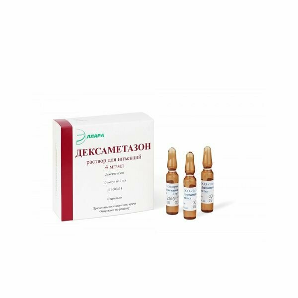 Дексаметазон, раствор для инъекций 4 мг/мл, ампулы 2 мл, 10 шт.