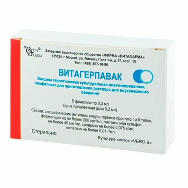 Витагерпавак вакцина герпетическая культуральная инактив. лиоф. д/приг. р-ра для в/к введ. 0,3мл 5шт интересное: