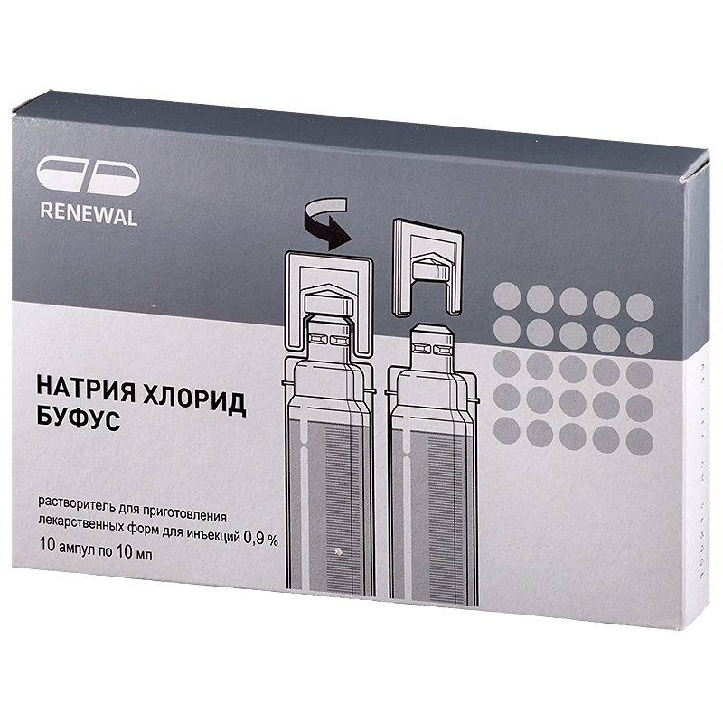 Купить Натрия хлорид буфус р-тель д/приг.лек.форм.0,9% амп.10мл №10 Renewal