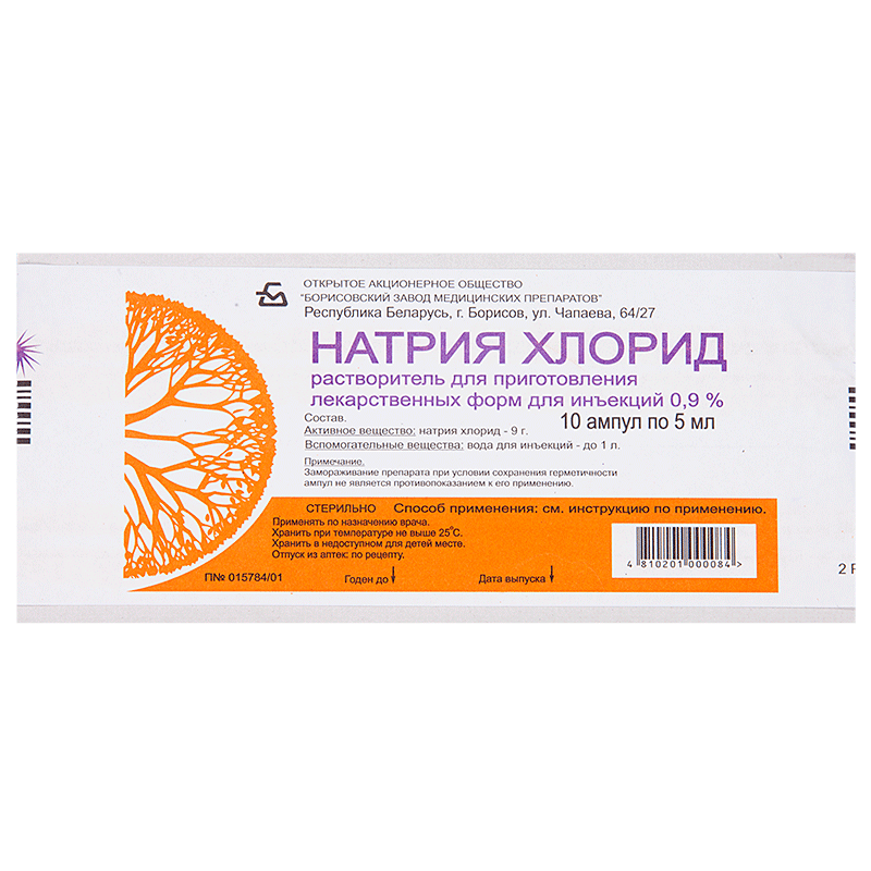Натрия Хлорид р-ритель д/приг.лек.форм д/ин.9мг/мл амп.5мл №10 интересное: