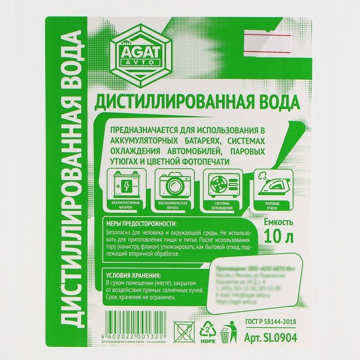 Вода дистиллированная агат, 10 л интересное: