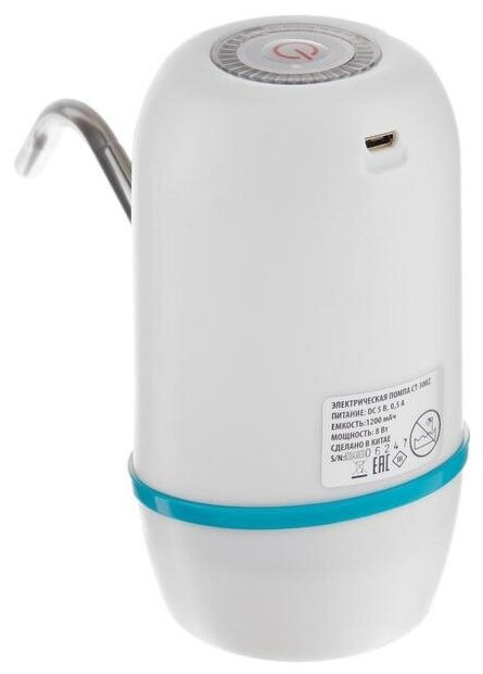 Помпа Centek CT-3002 Blue, электрическая, 8 Вт, 2.2 л/мин, 1200 мАч, от USB, бело-бирюзовая интересное: