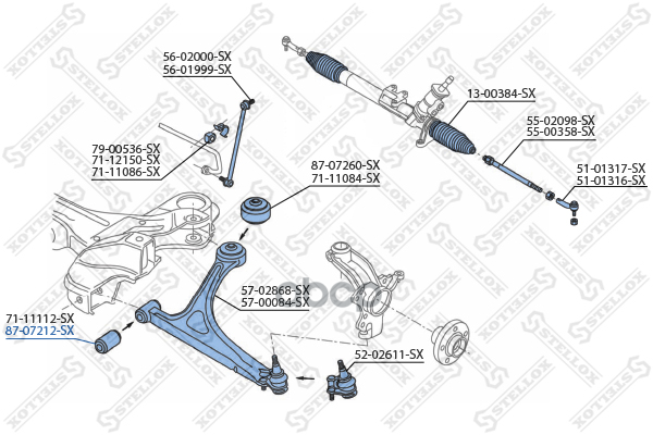 87-07212-Sx_сайлентблок Рычага Пер.! Audi A3/Tt, Vw Golf 98>_ак Крр Stellox арт. 87-07212-SX