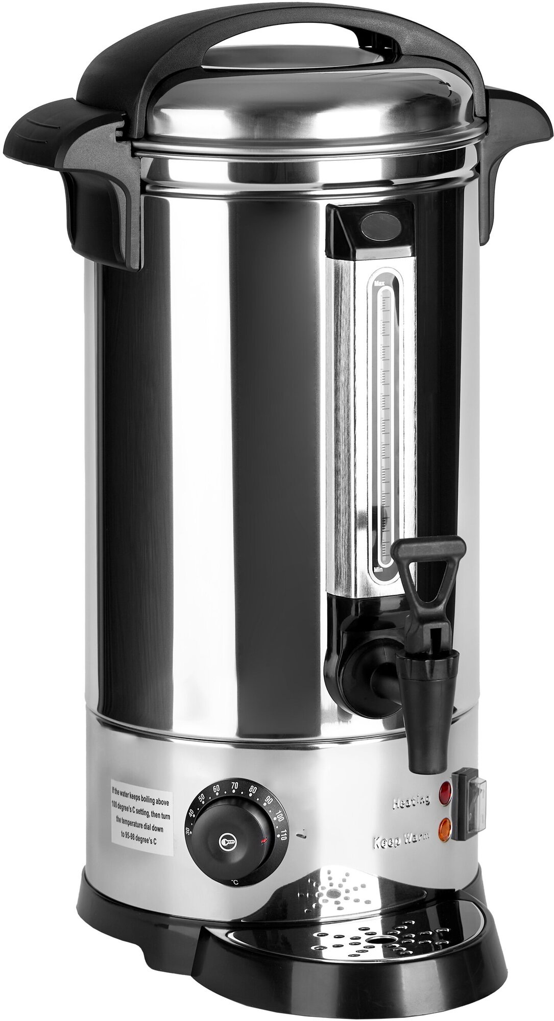 По факту влазит 15 литров воды и на шкале нет отметок с цифрами обьема заполнения термопота! Kорпус тоже нагревается,так как одинарный как на чайнике,до этого был как термос с рубашкой! Если поставить 110 градусов и налить максимум то кипит как паровоз и крышка тресется,оптимально 95 гр До этого была модель Gastrorag DFQ-80 через пол года проржавело дно и потек!Посмотрим на сколько этого хватит!В целом покупкой доволен! |