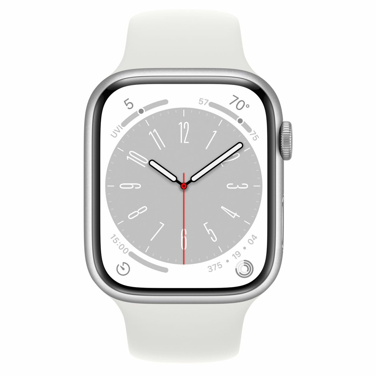 Apple Watch 8 GPS Silver Aluminum Case with White Sport Band 45mm M/L