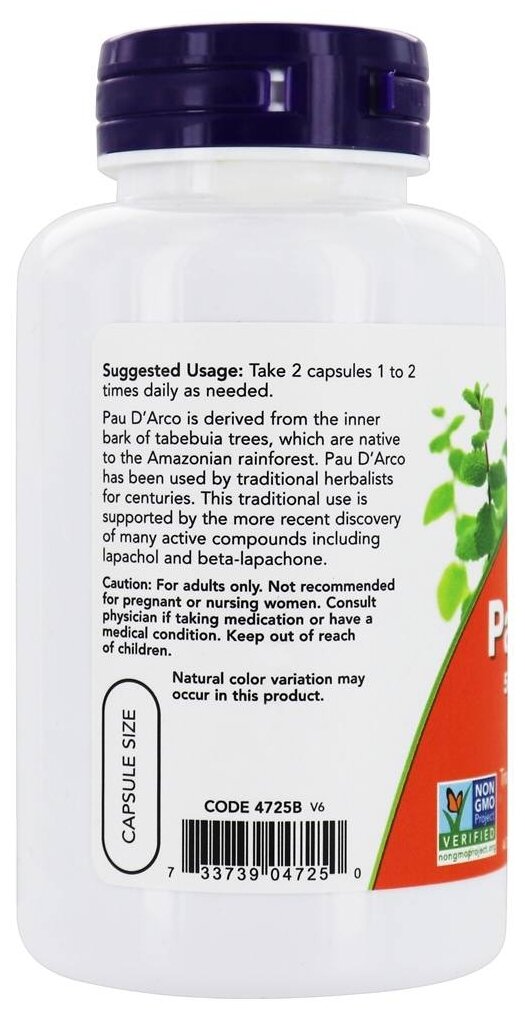 Капсулы NOW Pau D'Arco 500 мг, 100 шт. интересное: